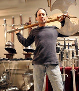 The orcs are coming. The heroes are surrounded. All hope seems lost – until with a mighty bellow, the barbarian warrior clears a path to safety with his improbably large ax. The day is saved thanks to the barbarian’s mighty thews and his mightier ax. If the above scene sounds familiar to you, then you will probably also recognize this ax. In television, in movies, in video games, and in tabletop RPG’s the fearsome barbarian reigns supreme. Often the party’s “tank” or damage-absorber, the barbarian is at the forefront of combat at all times – and often wields a weapon like this. Two-headed axes were not common historically due to the fact that if your attack bounces off of an opponent’s armor it means an equally heavy and sharp axehead is probably headed straight back at you. However, in fantasy, many weapons that are impractical get a pass due to the “rule of cool.” The two-headed Barbarian fantasy ax is one such weapon. This ax is an incredible feat of smithwork and craft. Weighing a total of 12 lbs (!), the ax is 48 inches long and has two equal sized, crescent-shaped heads. While we don’t recommend using it for combat, it is as battle-ready as every other product in our catalog. It would certainly turn heads at the rain fire or make an imposing centerpiece to your collection – assuming you can find hooks big enough to keep it on your wall.