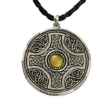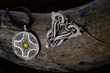From the 5th to the 11th centuries CE the Island of Great Britain was inhabited and ruled over by the Anglo-Saxons. A race descended from the Germanic tribes who emigrated to the island mixed with the indigenous peoples they encountered, the Anglo-Saxons were the founders of the nation of England. Up until the Norman Conquest of the 11th century, the culture of the Anglo-Saxons dominated the Isle, and many aspects of that culture remained to shape and inform the nation that was born out of the invasion of William the Conqueror. Anglo-Saxon artwork, especially Christian and religious works, borrowed heavily from their Celtic neighbors, including knotwork, spirals, and the Celtic Cross designs. This Anglo-Saxon pendant is a classic example of this style of art; covered in spiral and knotwork designs all incorporated into a Celtic Cross. More than a costume piece, this is truly a work of art.