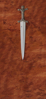 The Celtic Anthropomorphic sword is based on two surviving examples found at the British Museum. Evolving from the Roman spatha, this style of battle ready sword combined a short, diamond-shaped blade with a bronze hilt. The guard and pommel form the shape of a man, hence the name “Anthropomorphic.” The Pommel is the head and arms, while the guard represents its legs. The Celtic sword is a true testament to the Celtic people’s artistic sense and the focal point of artistry which stands at the very core of the Celtic culture.