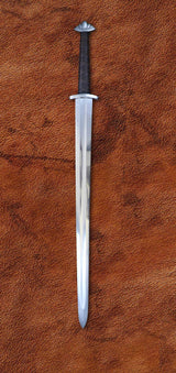 The Guardlan Sword is basically a Two-handed Five Lobe Sword with an overwrap leather grip. One of the most coveted medieval swords among collectors is the Viking sword. Given the multitude of Viking swords on the market, one wonders whether the market is saturated. Many reproductions, however, play into the stereotype of Viking swords as little more than long cleavers – heavy, brutish weapons wielded by brutal people. These reproductions fail to capture the spirit or “function” of the Viking sword as an important step in the evolution of the European medieval swords, from earlier Romanesque style to the arming swords of the late medieval period.