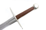 The sword of the Templar was not considered a mere weapon, but a religious relic. The crucifix Guard served not only for praying prior to a battle but also as a counter block in combat. The Guard, individually crafted from mild steel and finely shaped with smooth lines, is further accentuated by the rich leather wrapped Oak handle.