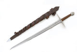 The two-handed Templar Sword is not only one of our best sellers, but it is also one of the tops “Staff picks”. Handcrafted and properly engineered for durability in combat, the Two-Handed Templar Sword is a very solid, responsive, and surprisingly well balanced for a sword of this statute. The blade, hand forged with 5160 High Carbon Steel, is skillfully Dual Hardened for precise cutting while remaining flexible for enduring combat. In a nutshell, the Two-handed Templar Sword is a finely crafted sword that is built to last!