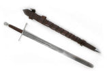 Faithfully crafted after a later historical model that survives in the Medieval Crime Museum (Mittelalterliches Kriminalmuseum), the ‘German Executioner sword’ is an imposing and powerful piece. Hefty, yet carefully balanced for its intended purpose, the 2.5 wide blade delivers powerful cutting blows. The blade is individually handcrafted from 5160 High Carbon steel and acid etched with stunning complexity, as the original compelling design.