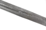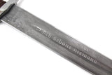 These swords generally featured broad, flat blades that end not in a point, but as a distinctive flat edge. The blade is heavily decorated as many executioner swords would be; and while in some cases the sword would be inscribed with the executioner’s name, in this case, the inscription translates as “I spare no one” – a brutal message for criminals facing the executioner sword’s edge.