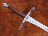 The Sage fantasy medieval sword was crafted with Tolkien’s realm in mind. Middle Earth and the battles waged for the safety and respect of all living being. This philosophy was maintained during the creation of this battle ready sword. The smooth and subtle curves of the blade, guard, and pommel were meant as a reflection of wisdom and understanding while the downward looping guard flows towards the curves of the blade in a form of dance between both parts. Despite this seemingly fragile aestheticism, this medieval fantasy sword is nothing but stern. It’s 2″ wide blade delivers destructive cutting blows with a very sharp tip, leading to equally devastating thrusts. The Sage fantasy sword is not only an eye catcher, but it is also a definite force on the battlefield.