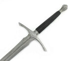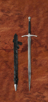 The Sage fantasy elite series medieval sword was crafted with Tolkien’s realm in mind. Middle Earth and the battles waged for the safety and respect of all living being. This philosophy was maintained during the creation of this battle ready sword. The smooth and subtle curves of the blade, guard, and pommel were meant as a reflection of wisdom and understanding while the downward looping guard flows towards the curves of the blade in a form of dance between both parts. Despite this seemingly fragile aestheticism, this medieval fantasy sword is nothing but stern. It’s 2″ wide blade delivers destructive cutting blows with a very sharp tip, leading to equally devastating thrusts. The Sage fantasy sword is not only an eye catcher, but it is also a definite force on the battlefield.
