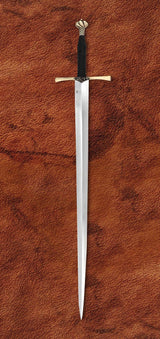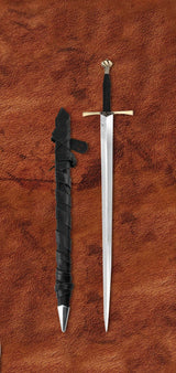 Hand forged, the Renaissance’s blade is made from 5160 steel and deferentially heat treated to a Rockwell of 53 at the core and 60 at the cutting edge, giving this medieval sword astounding toughness and flexibility. The Guard and pommel are solid Bronze, crowned with a slightly diamond shaped Oak grip. Light, agile, durable, and sturdy, this is an arming sword that any Medieval soldier would have been proud to call his own.