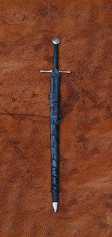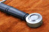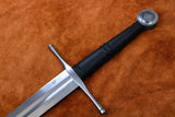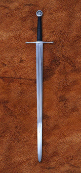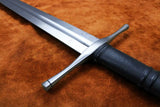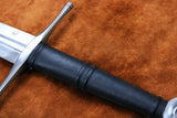 Working on the Two-Handed Norman Sword was a Challenging endeavor. Given the historical significance and popularity of Norman swords, we opted to recreate a Two-handed version of the traditional single handed Norman swords depicted in the Bayeux tapestry. The Guard, being very symbolic, served not only as a cross for praying prior to battles and ceremonies but also as a counter block in combat. The Guard, individually crafted from mild steel and finely shaped with smooth octagonal lines, is further accentuated by the decorated leather wrapped Oak handle. The two-handed Norman sword is not only one of our best sellers, but it is also one of the top “Staff picks” in our collection. Handcrafted and properly engineered for durability in combat, the Two-Handed Norman sword, is a very solid, responsive, and perfectly balanced weapon. The blade, hand forged with 5160 High Carbon Steel, is skillfully Dual Hardened for precise cutting while remaining flexible for enduring combat. In a nutshell, the Two-handed Norman Sword is a finely crafted sword that is built to last!