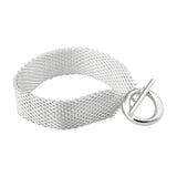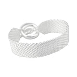 A series of intertwining black chain patterns wrapping seamlessly around this band. The Bracelet is lightweight and fits comfortably on the wrist. The chain mail bracelet pairs well with a medieval ensemble but suits many modern styles and atmospheres.
