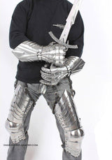 In J.R.R. Tolkien’s Lord of the Rings trilogy, the Nazgul were terrifying creatures that served the Dark Lord Sauron. Before they became creatures of evil, however, they were great kings of men who were given rings of power that slowly enslaved them – transforming them into Nazgul, the Ringwraiths. The Ringwraiths were depicted in the Peter Jackson movies as being humanoid, swathed in many layers of black fabric, and wearing cruel looking armor on their arms and legs. The Medieval Store has reproduced part of the armor here as the Fantasy Leg Armor.