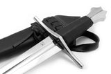 This “fishtail” Gothic Dagger was very popular in Germany during the mid to late 15th century. As the Middle Ages progressed, this versatile dagger continued to evolve according to the battlefield requirements of the day and became an essential part of the medieval Knight’s arsenal. As its companion sword, shown in the third page of the sword gallery, the Gothic dagger illuminates the artistic creativity of the time, resulting from the Gothic artistic revolution in the arts. The clear crisp blade and details hexagonal quillions and crisp fishtail pommel attest to this artistic revival. Swords and dagger of the 15th C. were not only exceptionally engineered, but also showed clear artistic patterns and influences from the gothic architectural structures of the time.